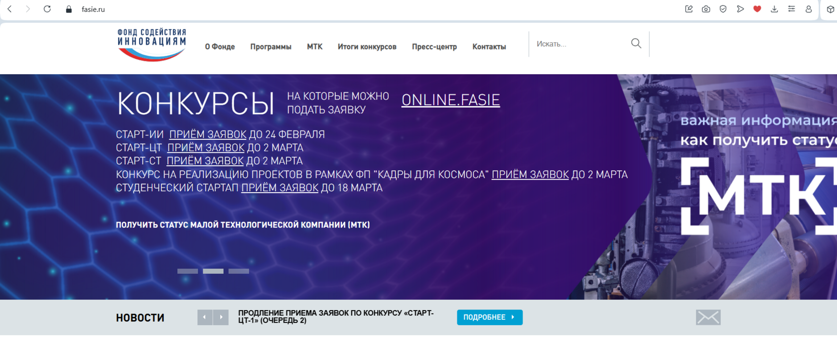 - Заявки на конкурс «Старт-ЦТ-1» (очередь 2) будут приниматься до 10:00 (мск) 2 марта 2026 года.