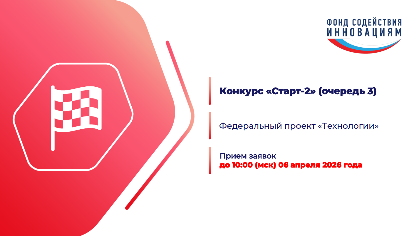 Заявки на конкурс «Старт-2» (очередь 3) будут приниматься до 10:00 (мск) 06 апреля 2026 года.